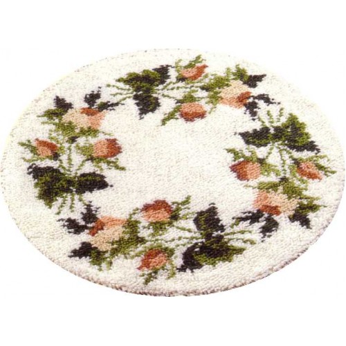 Floral Wreath latch hook rug kit with chart and plain canvas in Romney rug wool.