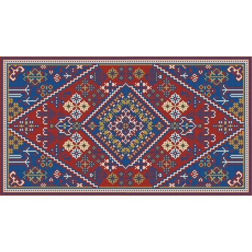Shiraz rug kit with chart and plain canvas in either Romney 4-ply rug wool or Anchor 6-ply rug wool.