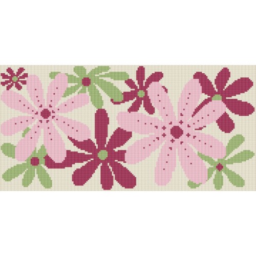 The colours used in this design are #13 raspberry, #38 cream, #43 pink and #53 light green.