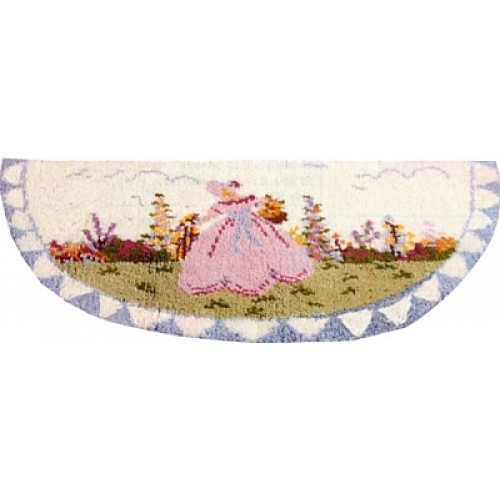 Retro Crinoline Lady latch hook rug kit with stencilled canvas in Romney rug wool.