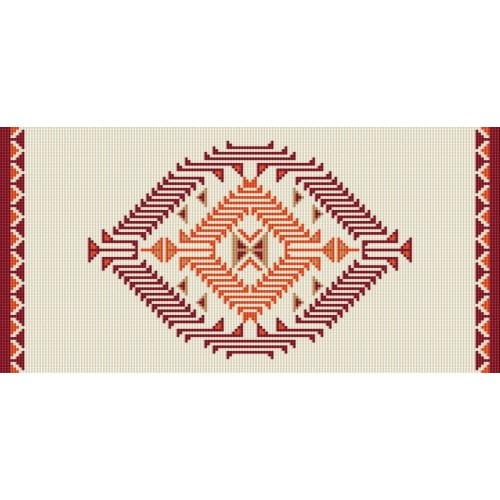 The colours used in this rug are #38 cream, #32 camel, #41 flame and #65 ruby.