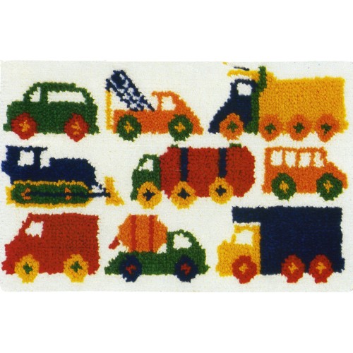 Traffic Jam latch hook rug kit with painted canvas in Romney pure wool.