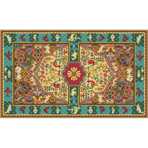 Shalimar rug kit with chart and plain canvas in Romney rug wool.